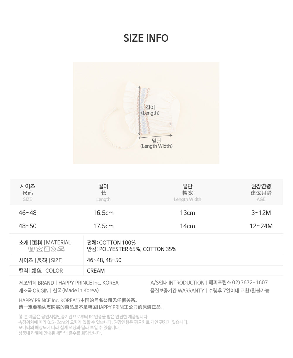 Product Description: Avery Baby Bonnet