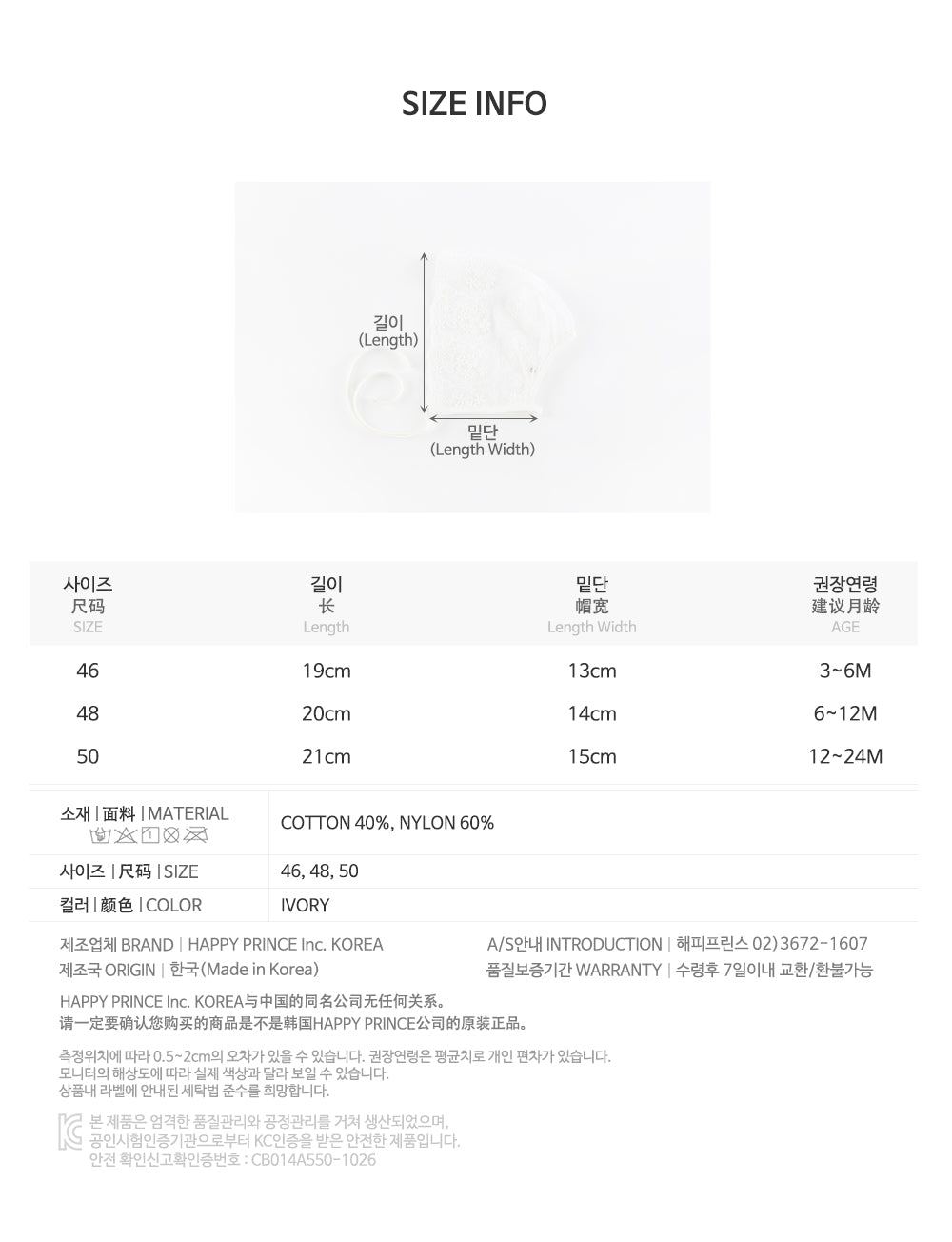 - Fabric: 40% Cotton, 60% Nylon