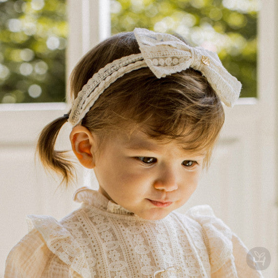 The Reeve Lace Baby Hairband is a charming accessory designed to add a touch of elegance to your little one's look.